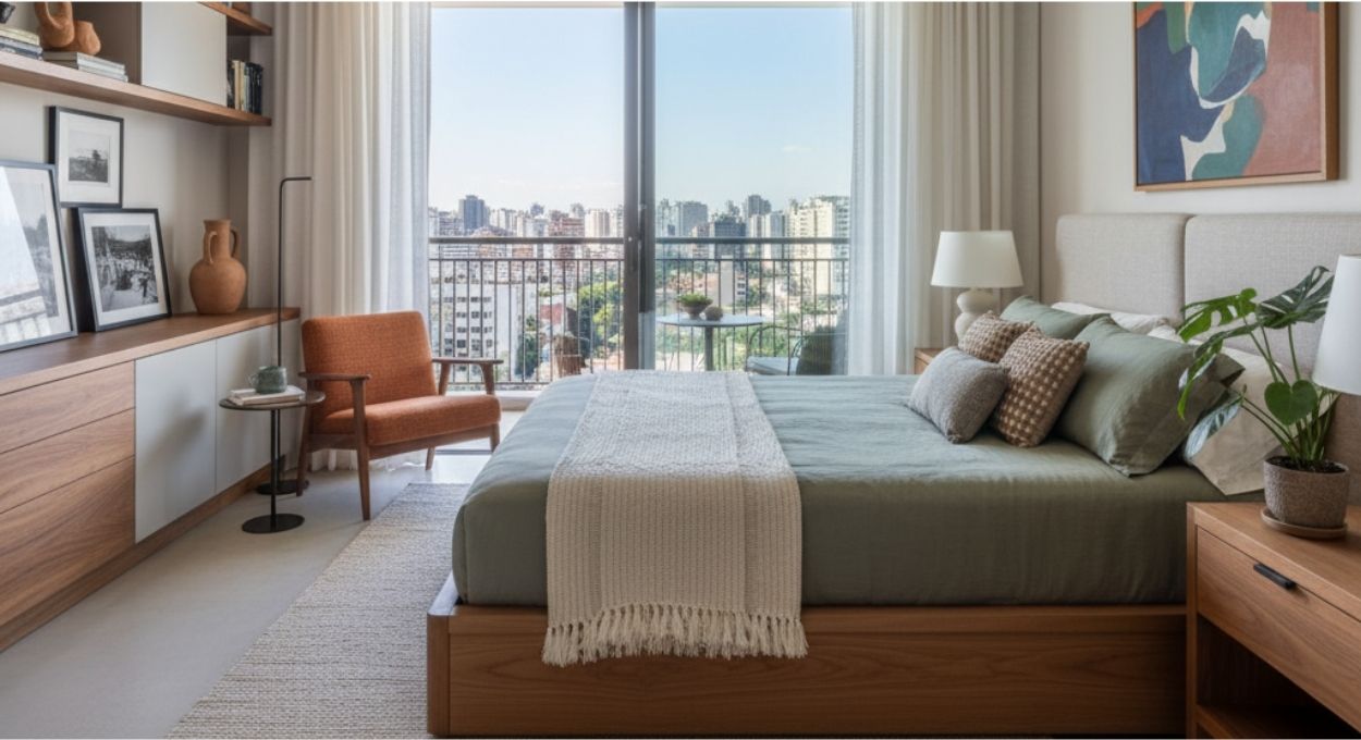 Proporção, leveza e escolhas inteligentes de mobiliário são o que separam um dormitório bonito de um ambiente que parece cheio demais — independentemente de quantos metros quadrados ele tem