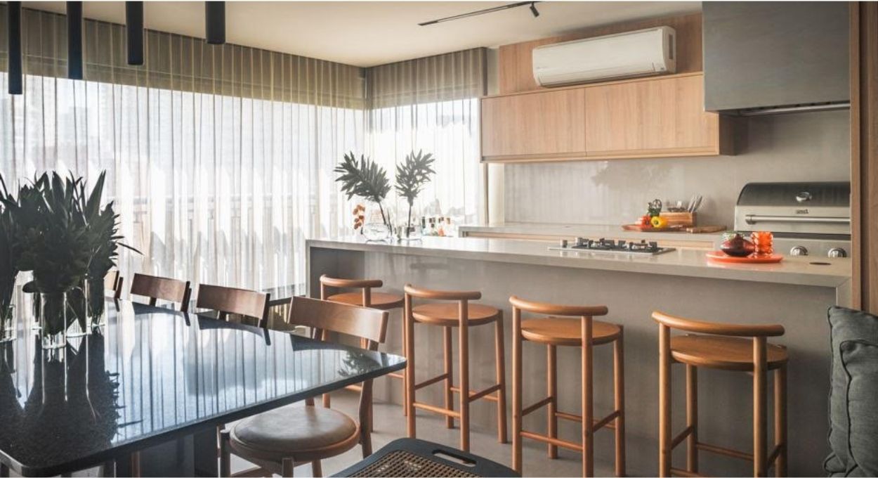 Essa integração, porém, exige um planejamento cuidadoso desde o início da obra. Não basta abrir uma parede ou instalar um cooktop em uma bancada: é preciso pensar em como os espaços conversam entre si, como a fumaça e os odores serão controlados e de que forma o mobiliário vai distribuir as pessoas no ambiente de maneira natural.