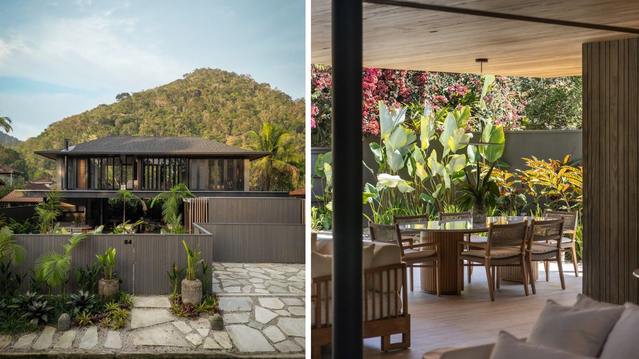 Mais do que uma casa inserida na Mata Atlântica, o projeto demonstra como a arquitetura tropical contemporânea pode criar conforto real sem romper com o ambiente natural. A paisagem não é pano de fundo; ela participa ativamente da vida cotidiana, alterando luz, temperatura e atmosfera ao longo do dia.