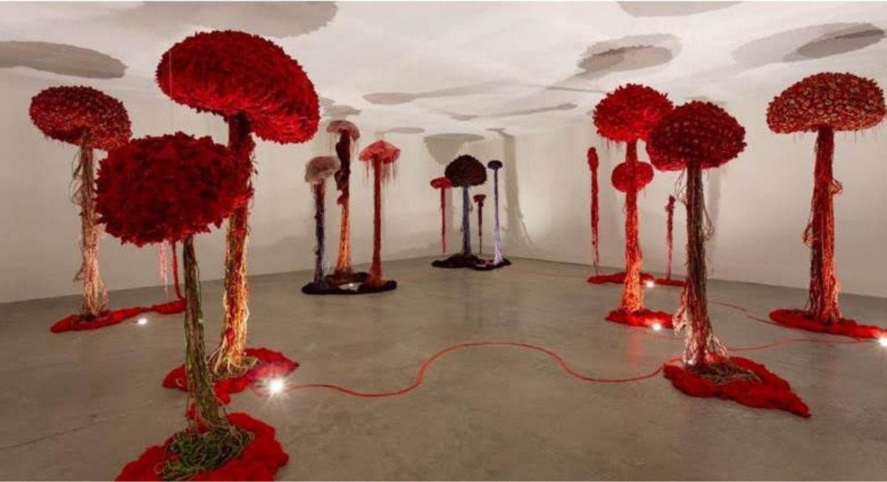 O contraste é proposital. Ao mesmo tempo em que seduz pela estética, a obra se revela como uma denúncia silenciosa. Os materiais incorporados, frequentemente associados à poluição, são ressignificados no bordado e passam a integrar corpos que representam a vida. A beleza, nesse contexto, funciona como ponto de entrada para uma reflexão mais profunda.