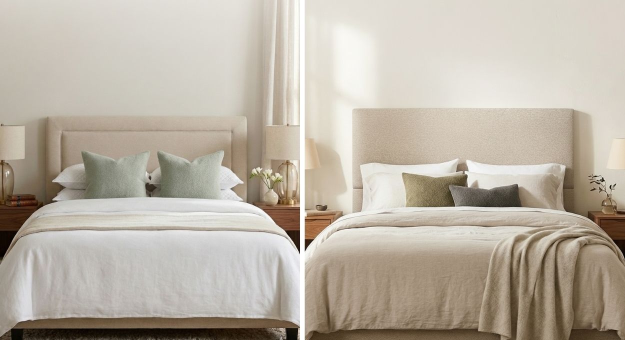Esse é um dos modelos mais versáteis entre os cinco. Ele se adapta bem a quartos contemporâneos, ao estilo Japandi, a ambientes com influência provençal e até a decorações mais clássicas, justamente porque a costura central remete a um repertório estético amplo e reconhecível.