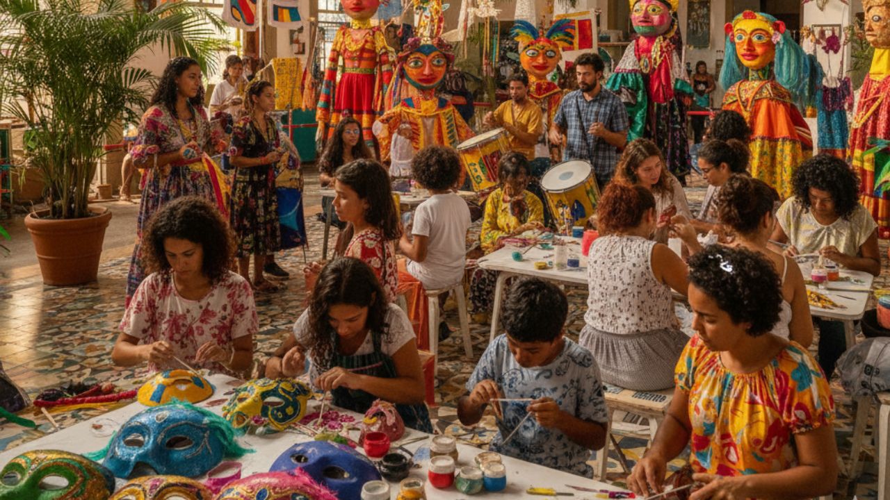Entre as atividades oferecidas estão oficinas voltadas ao uso das cores na confecção de adereços, à relação entre corpo, carnaval e território, ao desenvolvimento de fantasias a partir do corte, do brilho e da recomposição de materiais, além de práticas dedicadas à maquiagem carnavalesca, entendida como ferramenta de expressão artística e construção visual.