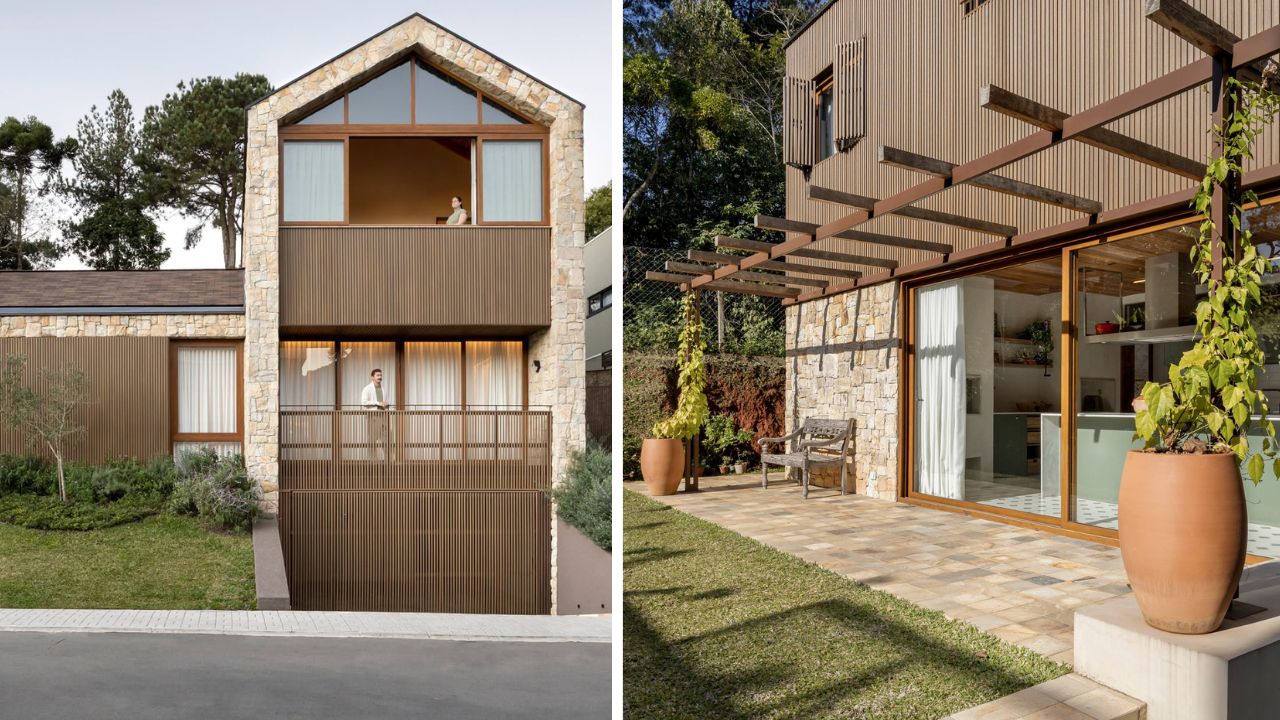 Existe uma diferença clara entre uma casa bem construída e uma casa que abraça quem mora nela. A residência de 318,7 m² assinada pelo Estudio Elmor, no bairro de Santa Felicidade, em Curitiba (PR), pertence à segunda categoria — e essa distinção aparece em cada detalhe do projeto, do piso ao teto.