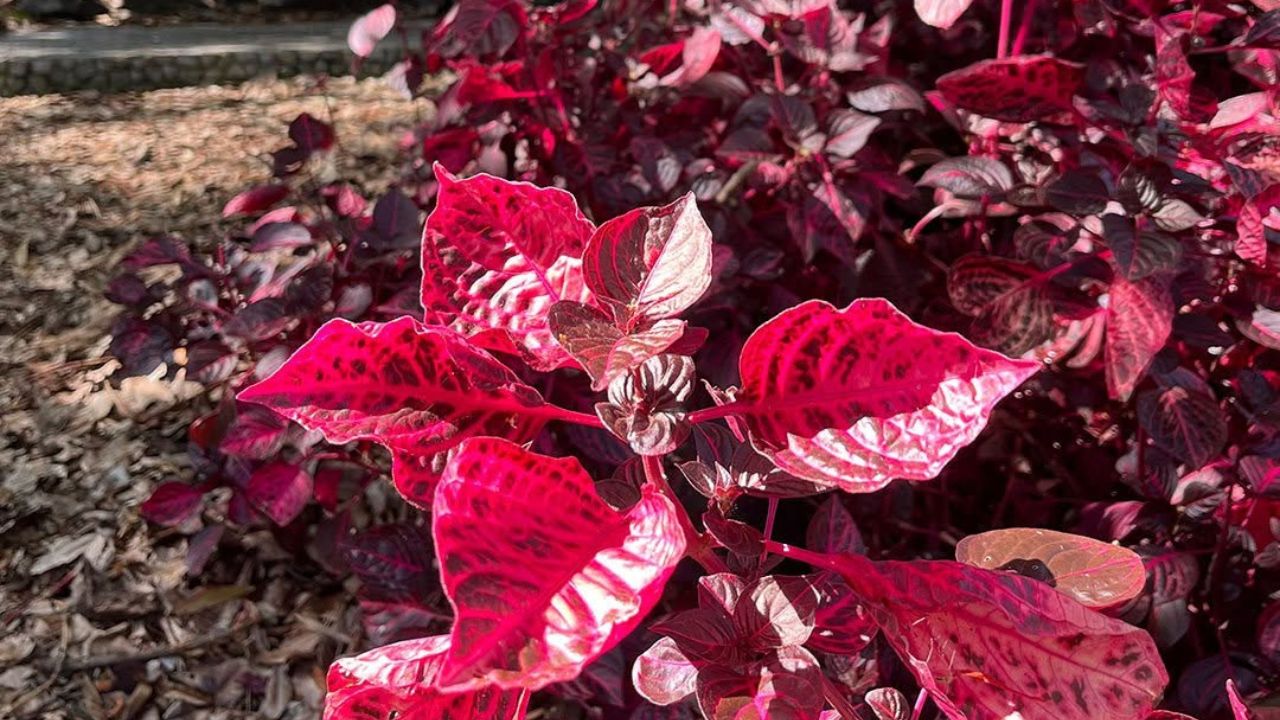 O calor do verão potencializa o vermelho característico da Iresine. Isso acontece porque o pigmento atua como uma camada protetora contra a radiação, concentrando‑se ainda mais nas folhas quando a incidência de luz é forte. Seu visual, por isso, é naturalmente mutável: ao longo do dia, a planta pode apresentar nuances que vão do vermelho-carmim ao bordô escuro, criando um efeito quase artístico no ambiente.