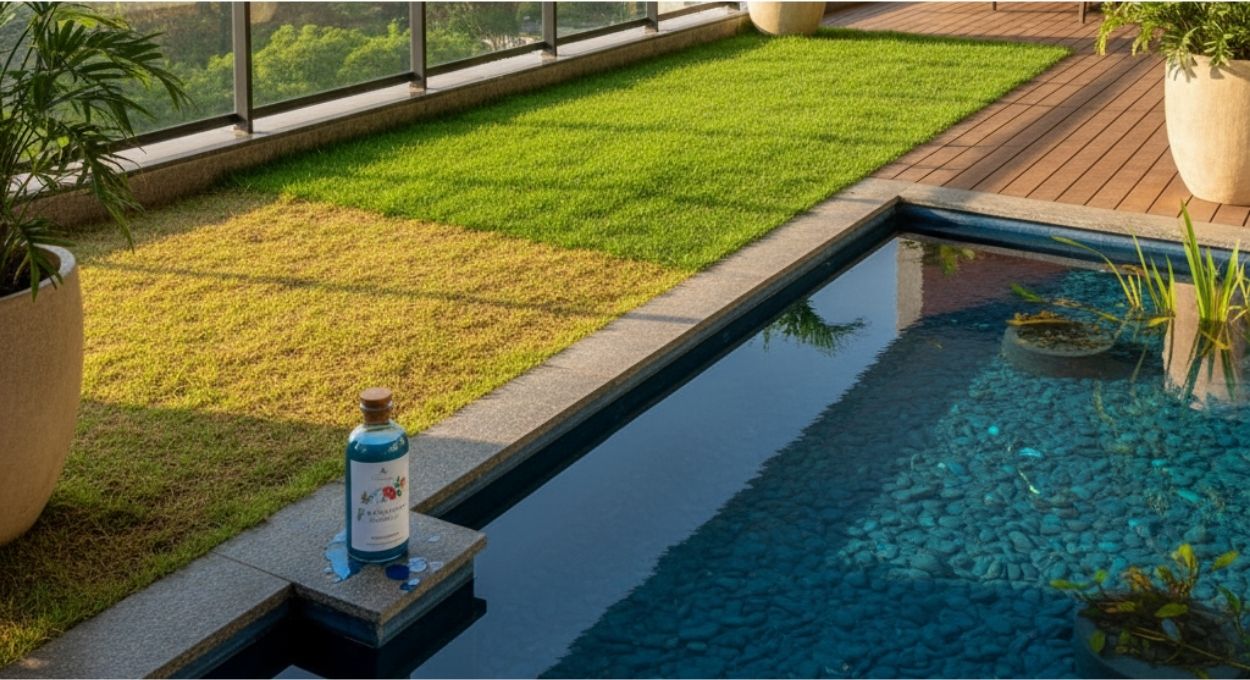 Além disso, o efeito é temporário e exige reaplicação. O risco de manchar calçadas, pedras e outras superfícies adjacentes é real se a aplicação for feita sem o devido preparo da área. Em lagos, o acúmulo de produto sem renovação da água pode criar um ambiente desequilibrado para a fauna aquática. E, quando mal diluído, o resultado visual fica artificial, exatamente o oposto do que um bom projeto paisagístico busca.