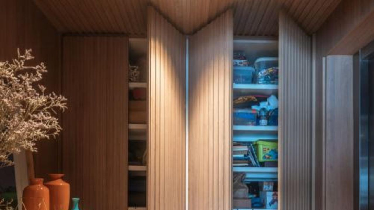 De acordo com Paula, as tradicionais portas de abrir funcionam bem em espaços amplos, já que exigem área livre para o giro das folhas. Como benefícios, oferecem acesso total ao interior do armário, são muito resistentes e de fácil manutenção.