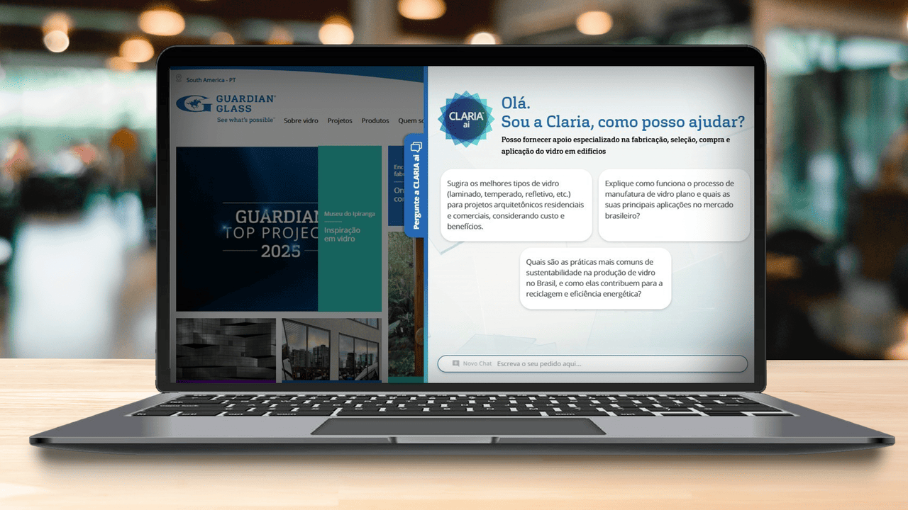 A Guardian Glass anuncia o lançamento da CLARIA™, uma assistente digital baseado em Inteligência Artificial Generativa que facilita o acesso de arquitetos, engenheiros, processadores, vidraceiros e demais profissionais a informações técnicas sobre a utilização de vidro para arquitetura e construção, além de auxiliar na escolha de produtos.