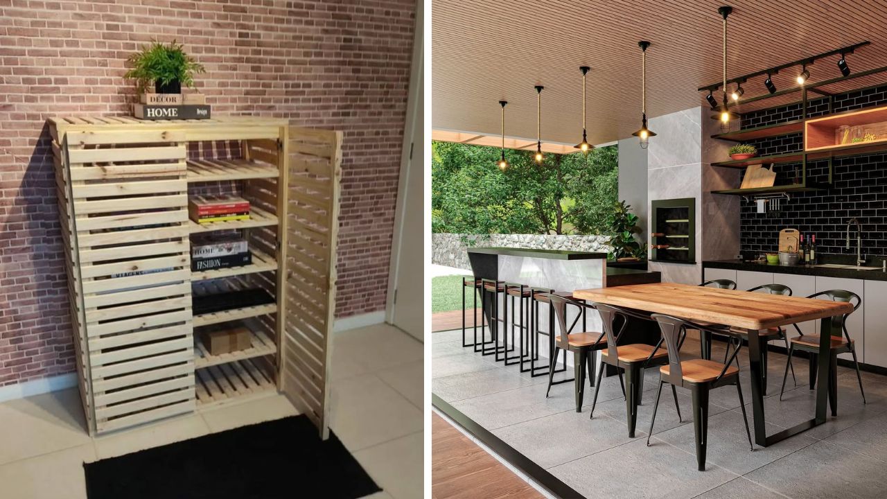 Ainda que a madeira crua possa ser usada em diversos elementos do décor, algumas aplicações são mais indicadas para garantir longevidade. Painéis de parede, cabeceiras de cama, prateleiras decorativas, armários altos, bancos de apoio e mobiliários pouco manipulados são excelentes opções para o uso desse material.