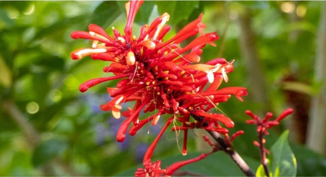 Um dos pontos mais relevantes do manto-vermelho no jardim vai além da estética: a planta é um ímã para beija-flores. O formato tubular das flores, aliado ao vermelho intenso das brácteas, é exatamente o tipo de estrutura que atrai essas aves. Jardins que incluem a Odontonema tendem a registrar visitas frequentes de beija-flores ao longo do dia, transformando o espaço externo em um ambiente com movimento e vida que nenhum objeto decorativo consegue replicar.