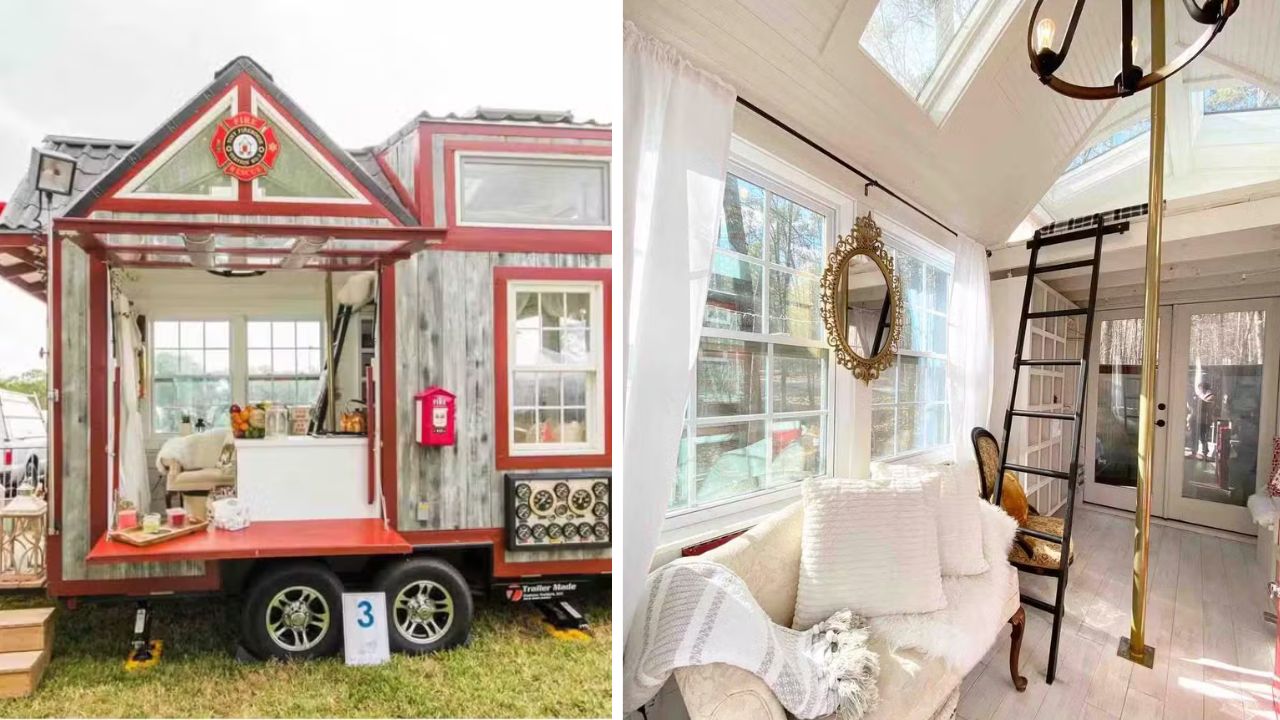Batizada de Tiny Firehouse, a microcasa foi concebida como homenagem aos profissionais de resgate e aos chamados heróis da linha de frente. O anúncio do imóvel descreve o refúgio compacto — com dimensões aproximadas de 8,5 x 16 pés — como uma combinação entre o aconchego da vida minimalista e um caráter marcante.