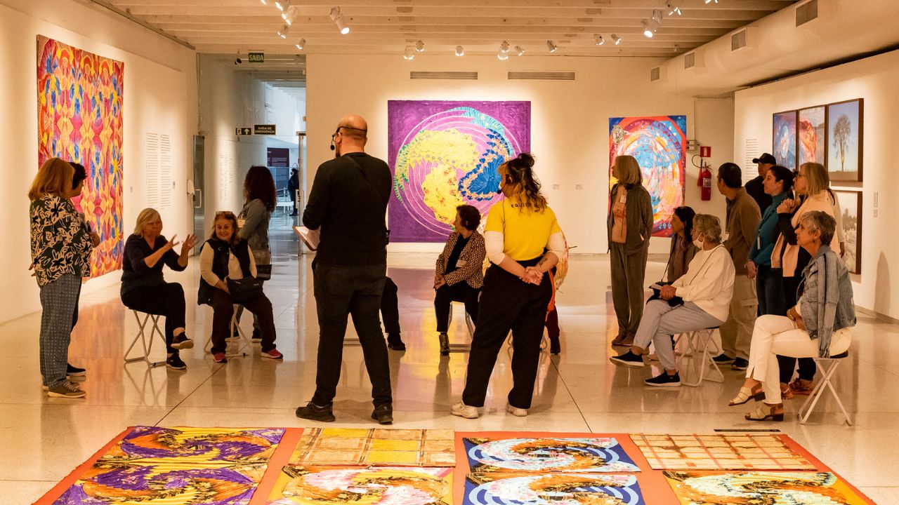O Arte para Maiores existe desde 2014 e, ao longo de mais de uma década, consolidou-se como um dos programas educativos mais reconhecidos do MON. A proposta é simples e potente: aproximar o público acima de 60 anos da arte, sem exigir formação prévia, sem criar barreiras. Os encontros mesclam visitas mediadas em sala expositiva, atividades de experiência artística e dinâmicas de integração, tanto no formato presencial quanto virtual.