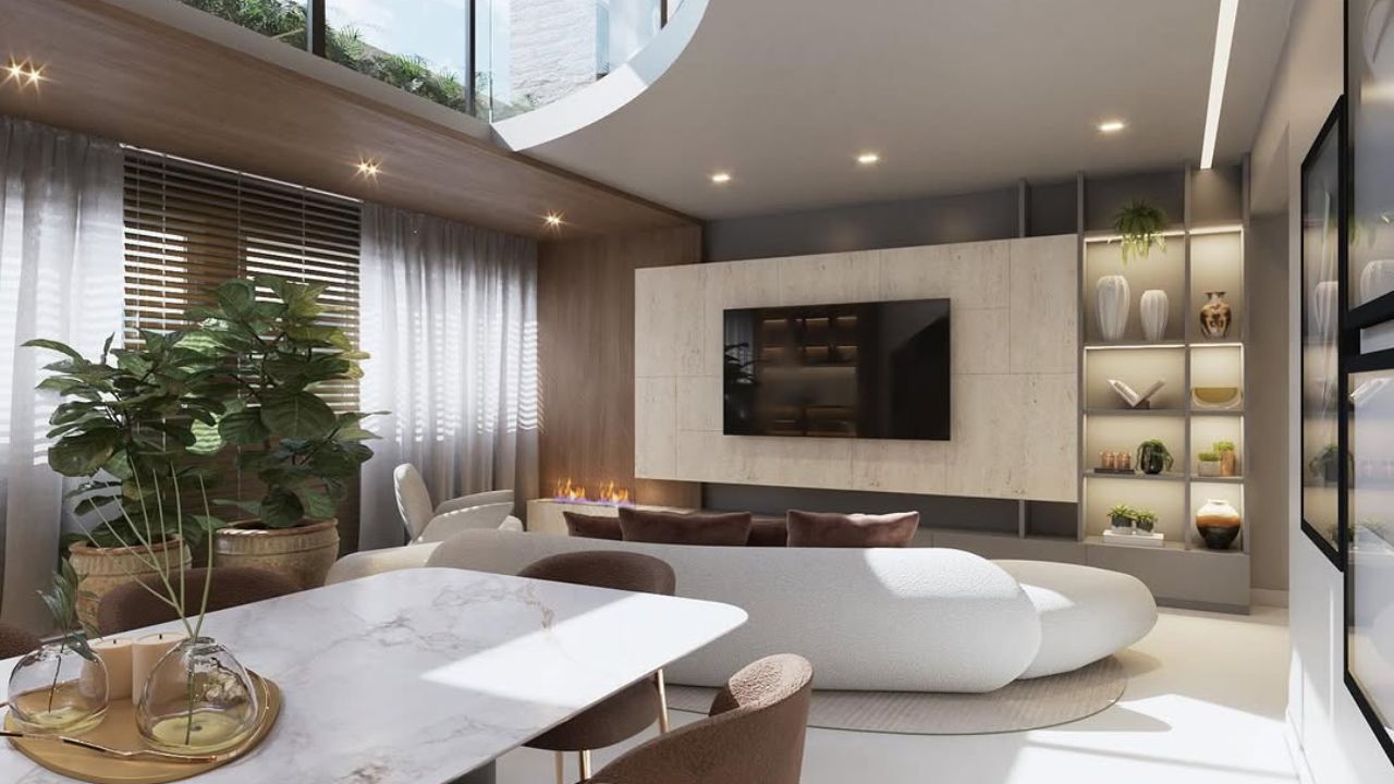 Outro aspecto essencial do novo luxo residencial está no desenho dos espaços. O layout acompanha o estilo de vida contemporâneo, priorizando integração e circulação livre. Ambientes sociais conectados, cozinhas abertas para o living e áreas internas que se estendem para jardins ou varandas criam uma sensação de continuidade e liberdade.