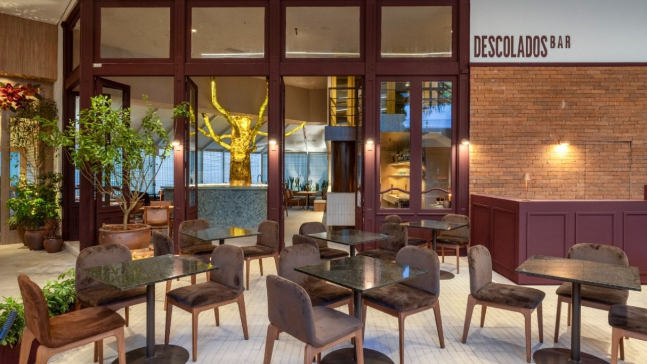 Inspirado no lifestyle vibrante do Rio, o Bar Descolados oferece o espírito de um lounge descontraído, onde uma grande árvore central — moldada em resina e vidro reciclado — se torna símbolo da integração entre cidade e natureza.
