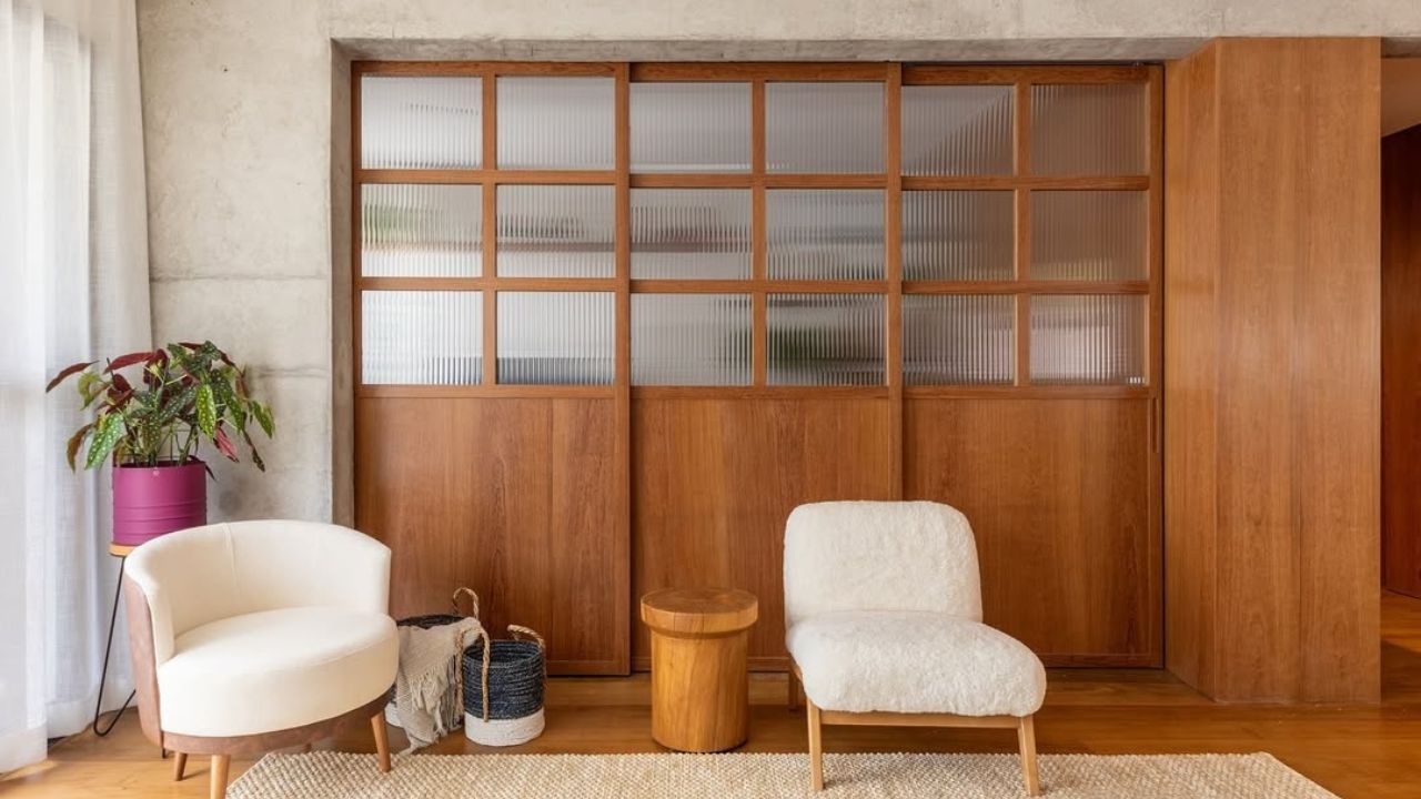 Em imóveis compactos, esse recurso é decisivo para transformar a experiência de uso. Já em plantas maiores, a porta funciona como um filtro espacial, permitindo que sala, cozinha, escritório ou varanda se conectem apenas quando necessário. Dessa forma, a integração deixa de ser permanente e passa a ser controlada, adaptando-se à rotina dos moradores.