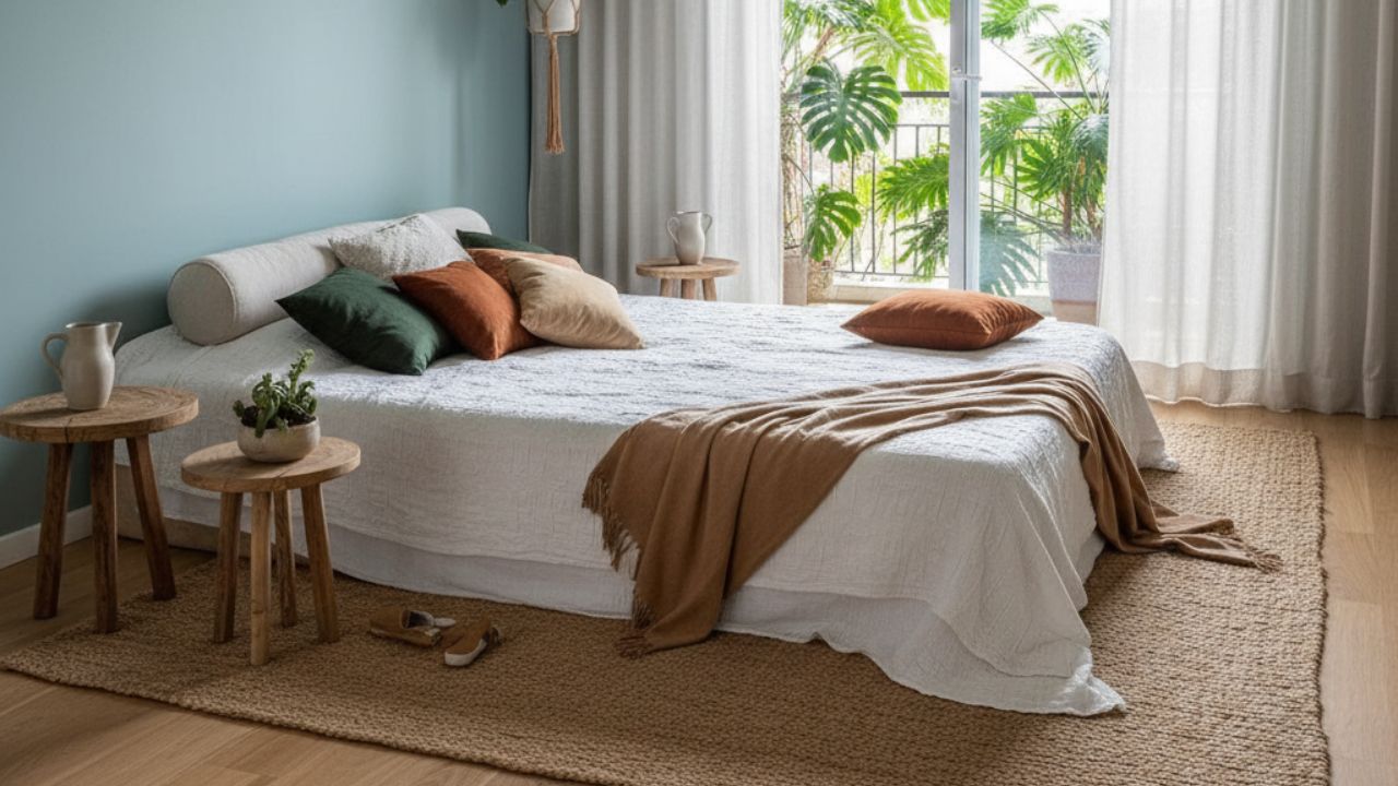 Do ponto de vista do design de interiores, camas mais baixas ampliam visualmente o espaço, facilitam a circulação e reforçam a sensação de ordem no quarto. Além disso, permitem que outros elementos — como iluminação indireta, tecidos naturais e a ventilação cruzada — assumam um papel mais relevante na composição. O quarto deixa de ser um cenário rígido e passa a funcionar como um refúgio sensorial.