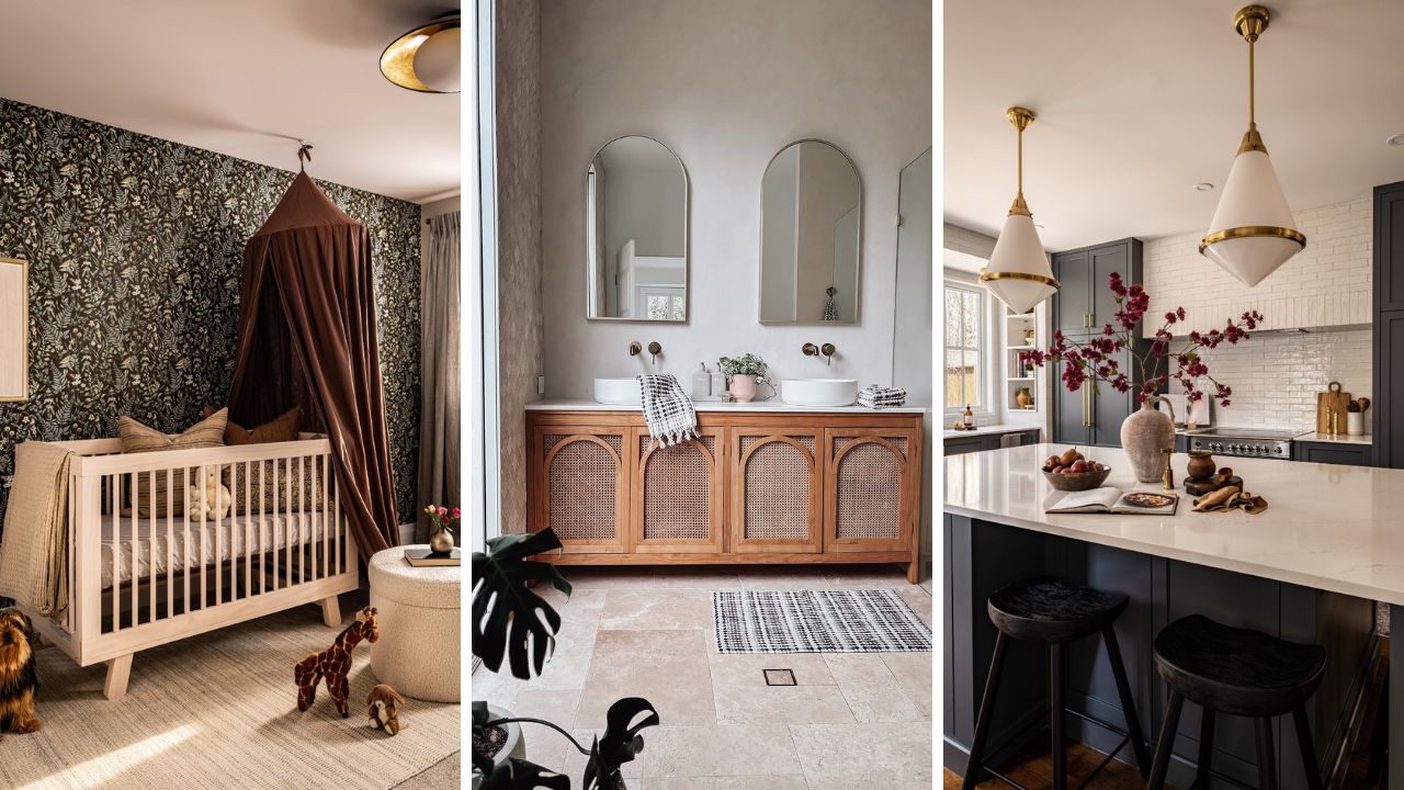 Embora menos óbvio, o conceito de tile drenching inspira este quarto infantil ao apostar em superfícies contínuas e envolventes. A padronagem cria profundidade visual e transforma as paredes em protagonistas, trazendo identidade e sensação de acolhimento ao ambiente. | Foto: westofmain / justinthomasonphotography