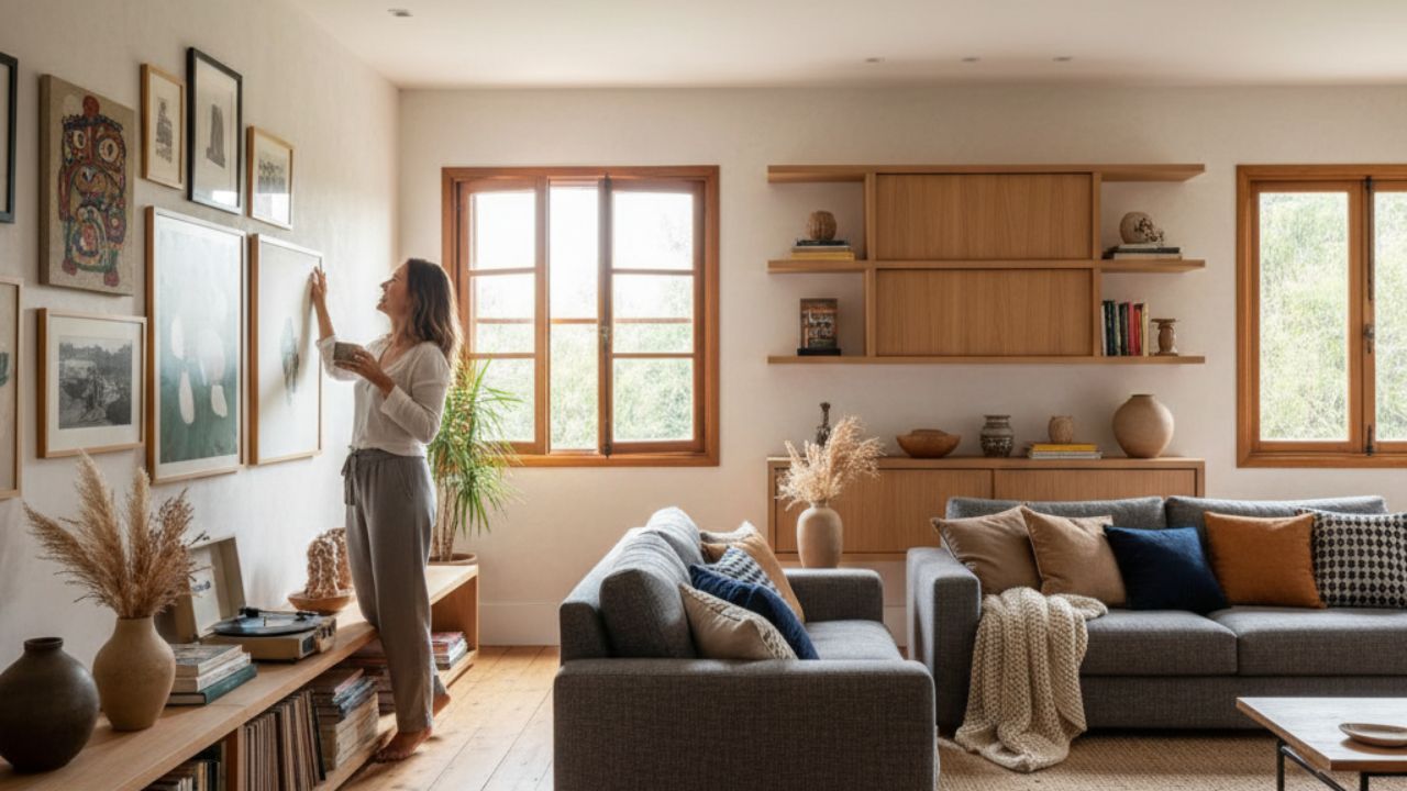É na camada final que o ambiente deixa de ser apenas correto e se torna único. Arte, objetos autorais e peças carregadas de memória transformam o espaço em autobiografia.