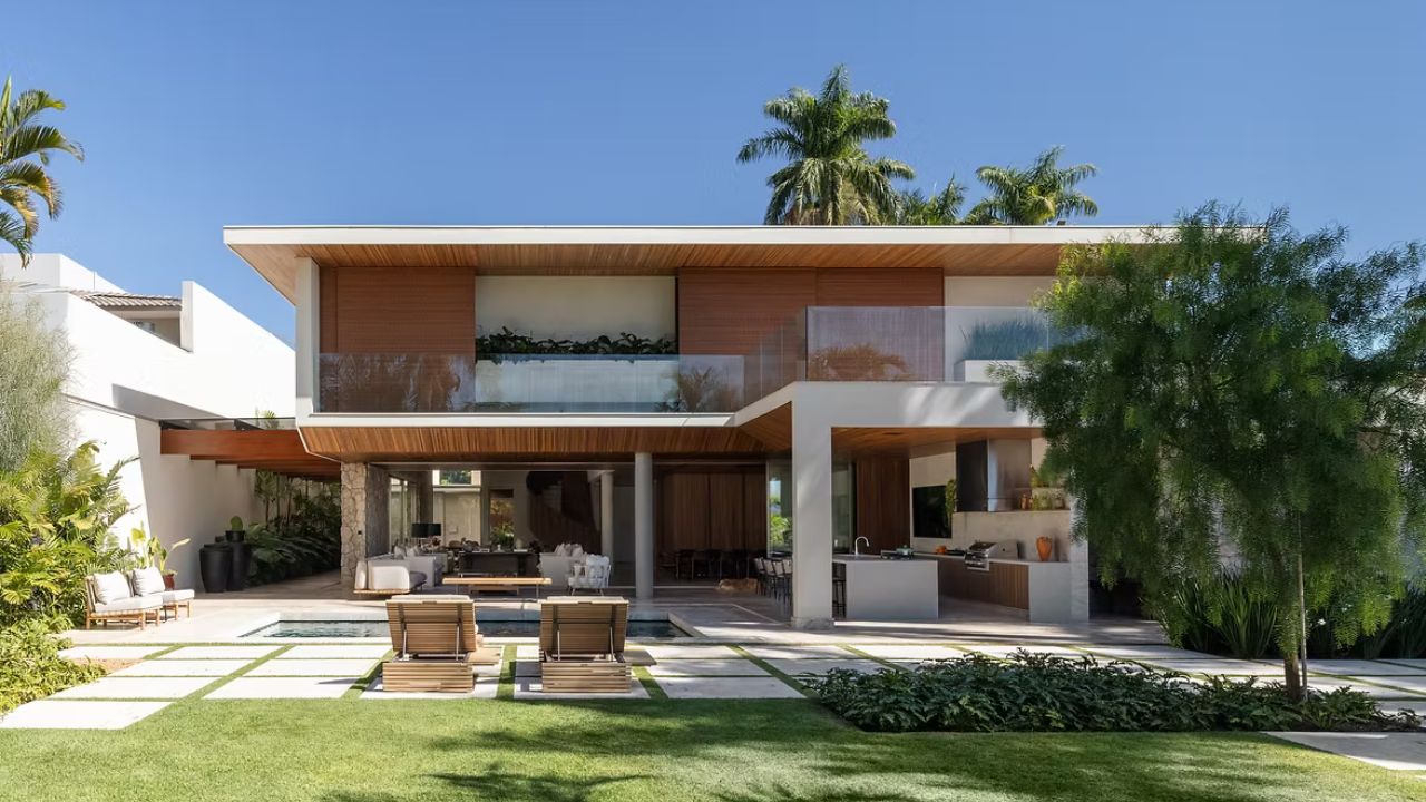 A casa projetada pelo escritório Morada 31.12 Arquitetura e Interiores nasceu de um desejo muito claro: criar uma residência que deixasse a luz entrar com generosidade, que respirasse junto ao jardim e que traduzisse a rotina de um casal com dois filhos que utiliza cada metro quadrado do lar. A partir dessa premissa, a morada de 989 m², situada no Lago Sul, em Brasília, cresceu como um organismo vivo, onde a relação entre paisagem, vazios, texturas e volumes orienta a experiência sensorial e emocional de quem a habita.